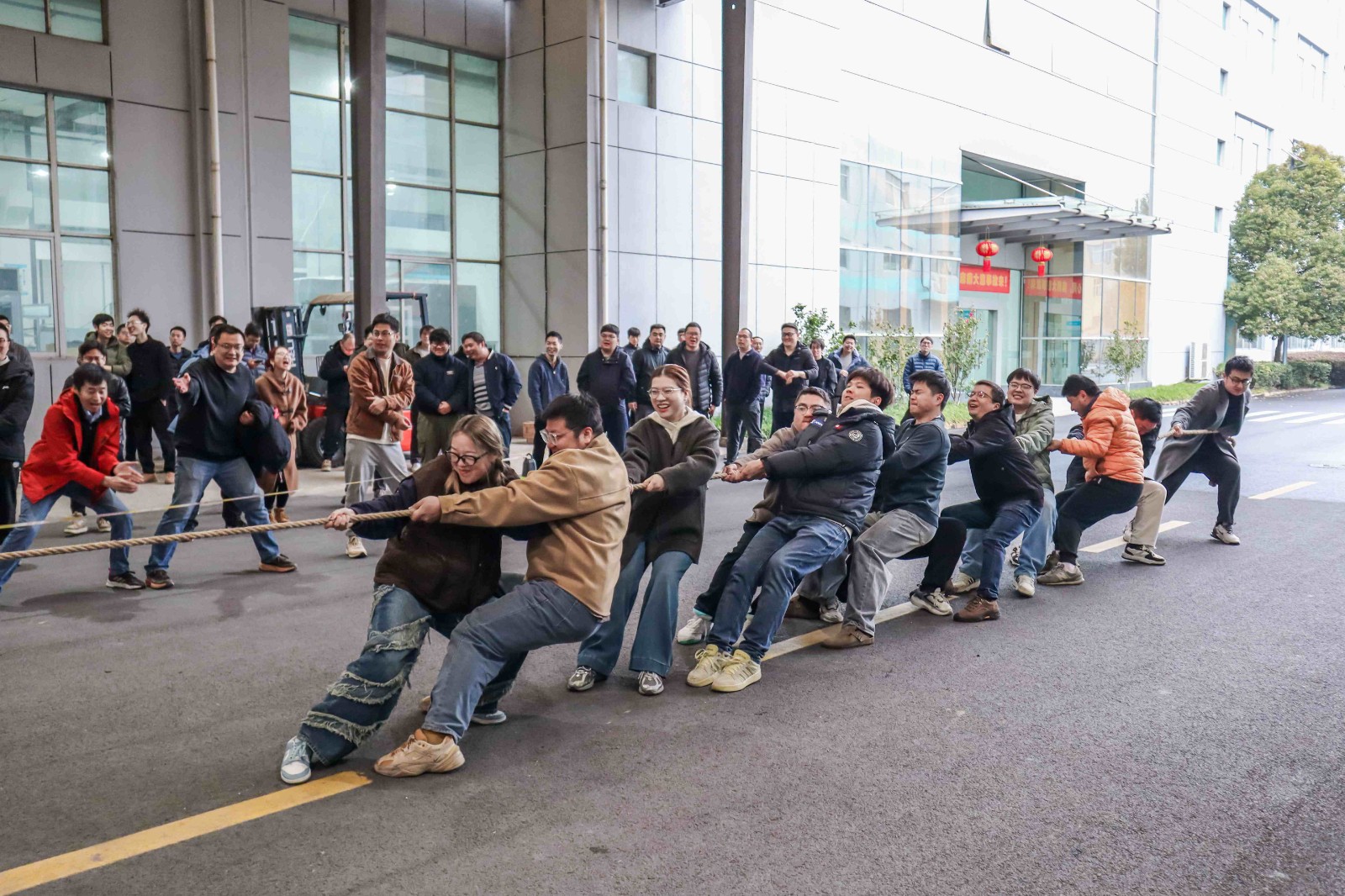 哨響,勁發(fā)!作為延續(xù)多年的開工傳統(tǒng),拔河比賽瞬間點(diǎn)燃全場(chǎng)熱情。賽場(chǎng)之上,泰林人穩(wěn)扎馬步、全力傾身,緊握麻繩凝聚全身力量;賽場(chǎng)之外,加油吶喊聲此起彼伏,響徹園區(qū)。麻繩之上紅綢的每一次擺動(dòng),都緊緊牽動(dòng)著所有人的心。